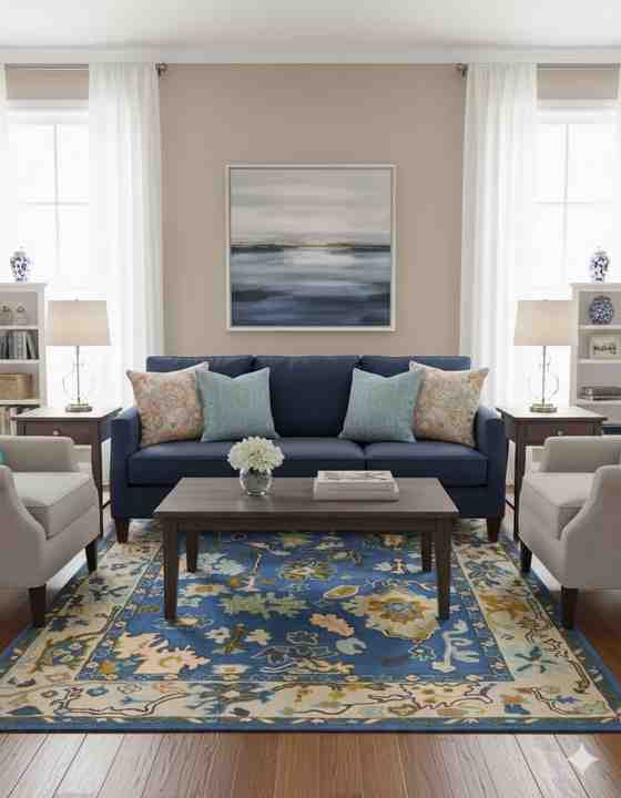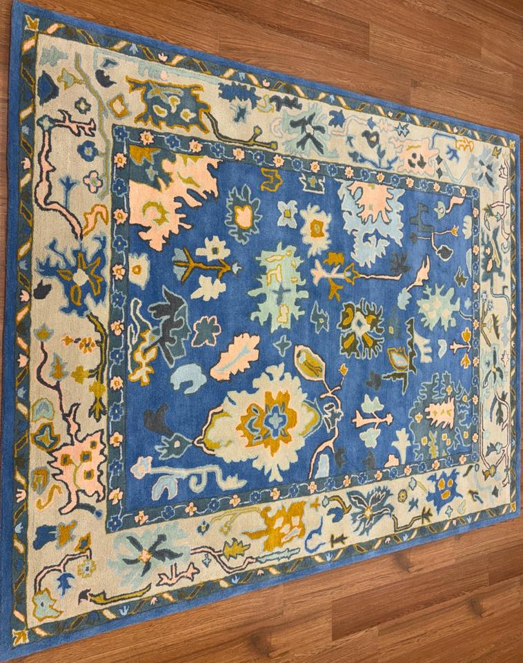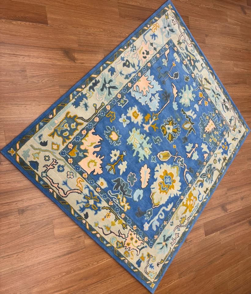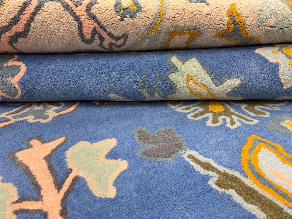 พรมขนสัตว์แบบถักมือสีเบจพรมทออกลายดอกไม้ทำด้วยมือแบบอินเดียกันไฟฟ้าสถิตย์สำหรับห้องนั่งเล่นห้องนอนของตกแต่งบ้าน