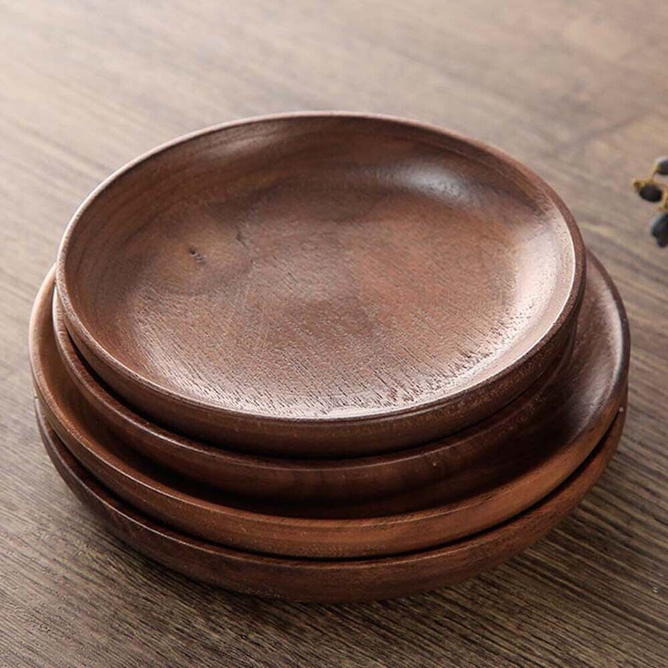 จานไม้ทำมือรักษ์โลก คุณภาพดีที่สุดสำหรับใช้ในชีวิตประจำวัน สไตล์คลาสสิก ใช้กับเครื่องล้างจานและไมโครเวฟได้