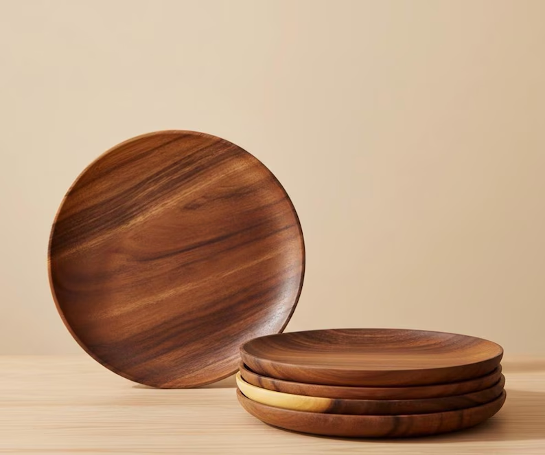 จานไม้ทำมือรักษ์โลก คุณภาพดีที่สุดสำหรับใช้ในชีวิตประจำวัน สไตล์คลาสสิก ใช้กับเครื่องล้างจานและไมโครเวฟได้