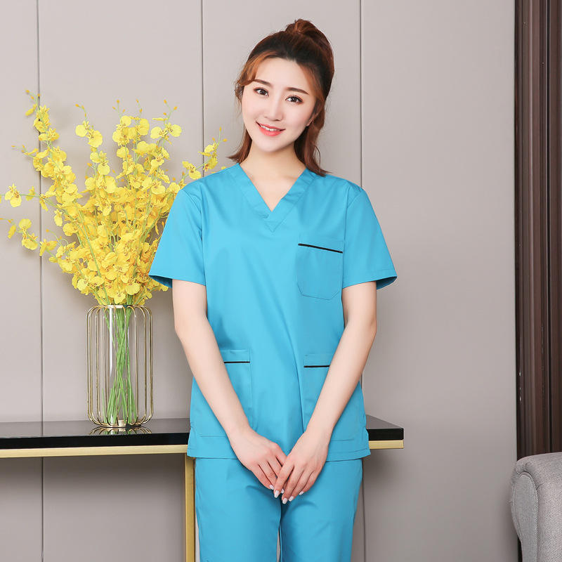 ชุดขัดฟันแขนสั้นชายหญิงชุดขัดทำความสะอาดมือสำหรับแพทย์ศัลยกรรมเสริมความงามชุดทำงานคลินิกทันตกรรม
