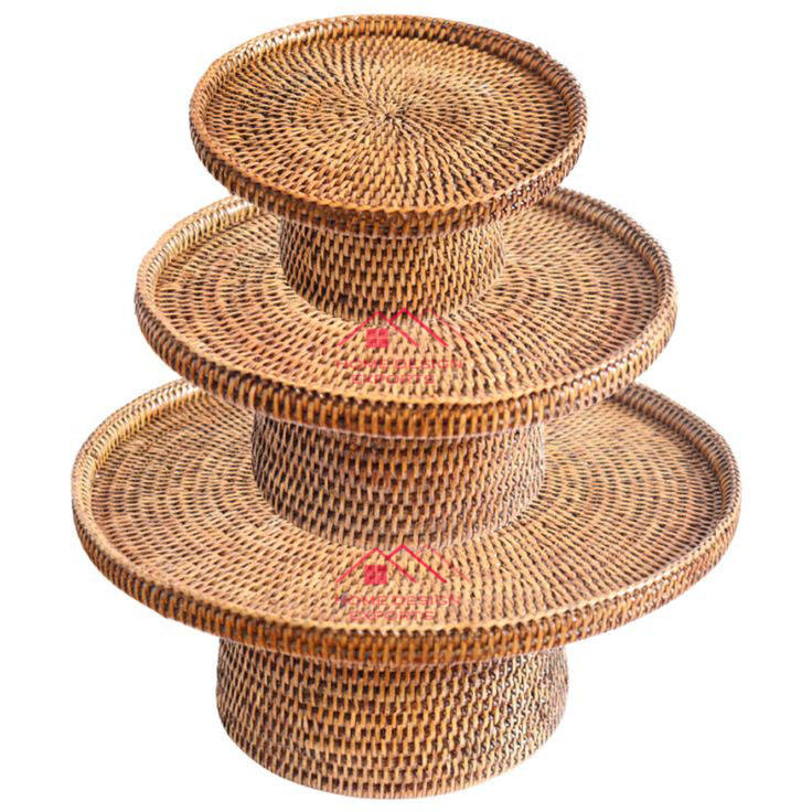 ขาตั้งเสิร์ฟเค้กหวายธรรมชาติจากปอกระเจาและหวาย สำหรับงานเลี้ยง สไตล์คลาสสิก เป็นมิตรกับสิ่งแวดล้อม