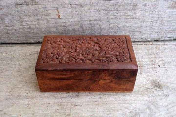 กล่องไม้แกะสลักลายละเอียดอ่อน สไตล์โบราณ งานฝีมืออินเดีย สำหรับตกแต่งบ้าน ออกแบบตกแต่งภายใน ขายต่อ