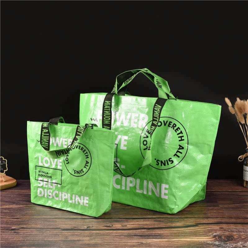 กระเป๋าผ้าทอมือเคลือบพลาสติกแบบกำหนดเอง กระเป๋าของขวัญความจุขนาดใหญ่ กระเป๋าช้อปปิ้งใส่เสื้อผ้า กระเป๋าโท้ทผ้าทอมือ มีสินค้าในสต็อก