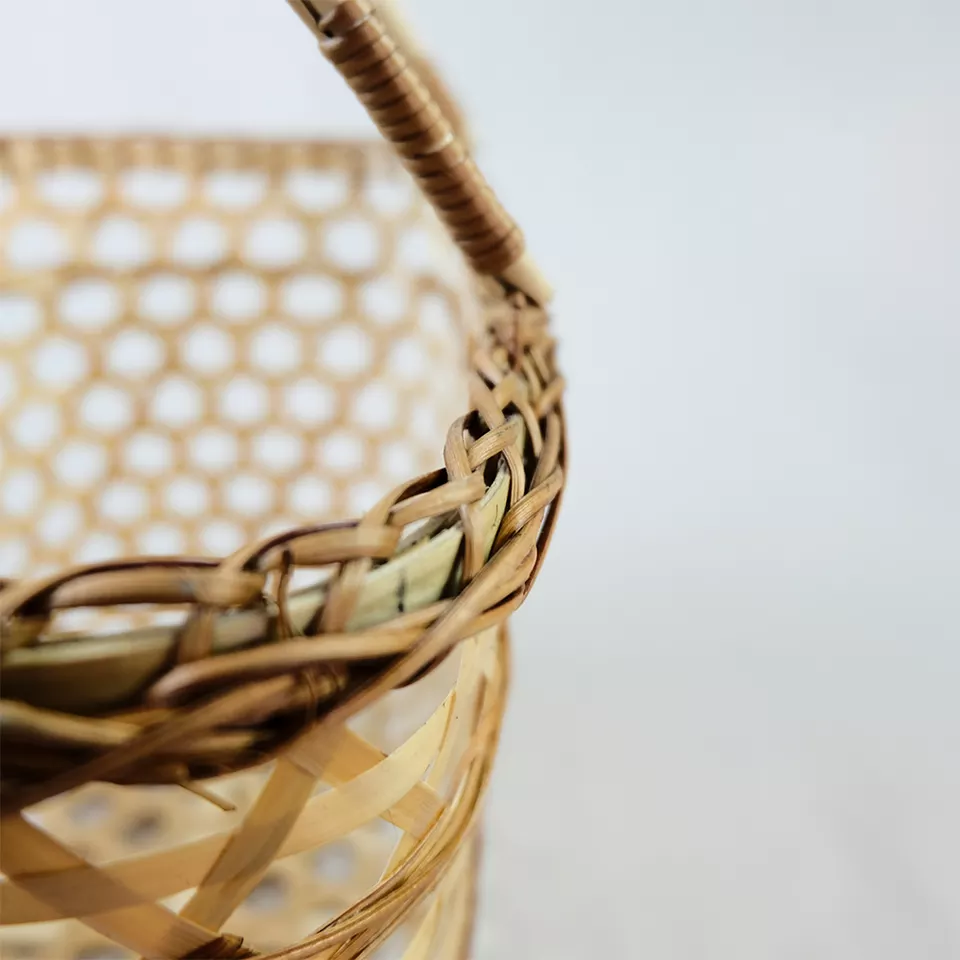 ตะกร้าปิกนิกหนังไม้ไผ่สานด้วยมือของขวัญย้อนยุค-กระเป๋าหวายแบบเปิดรูปแบบกรอบสีสันสดใสทำจากเวียดนาม