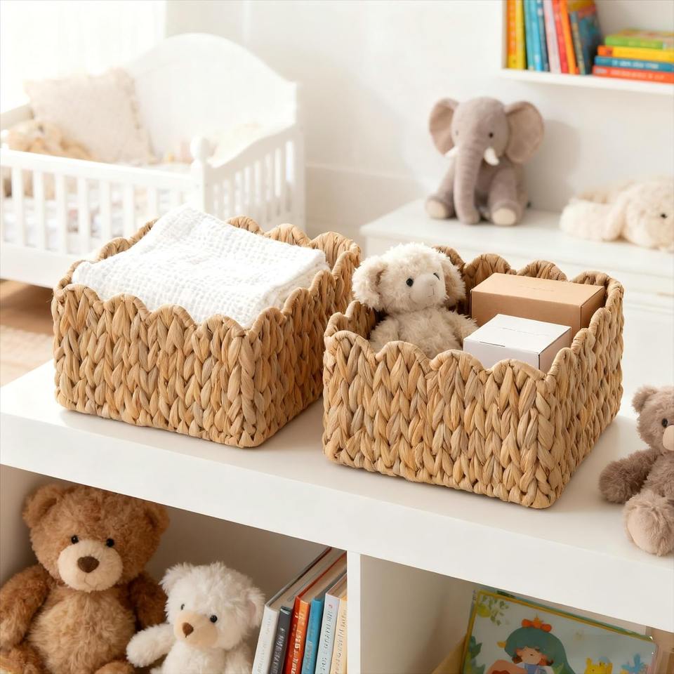 ตะกร้าสานมือสำหรับชั้นวางของ ตะกร้าเก็บของทำมือ ขายส่ง เป็นมิตรกับสิ่งแวดล้อม ผลิตในเวียดนาม