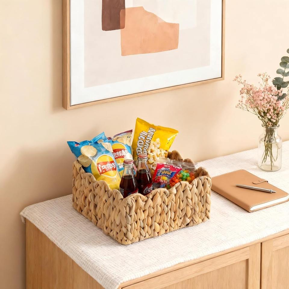 ตะกร้าสานมือสำหรับวางบนชั้น
