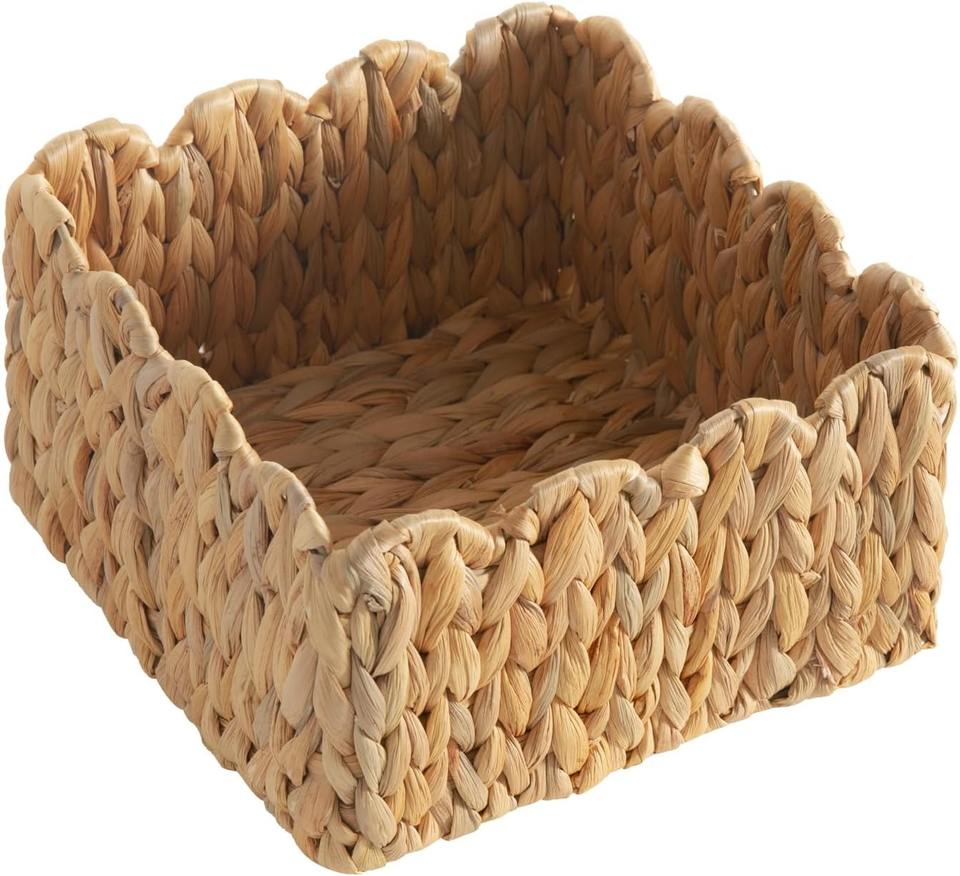 ตะกร้าสานมือสำหรับวางบนชั้น:ขนาด: กว้าง 9.5 x สูง 5.5 นิ้ว