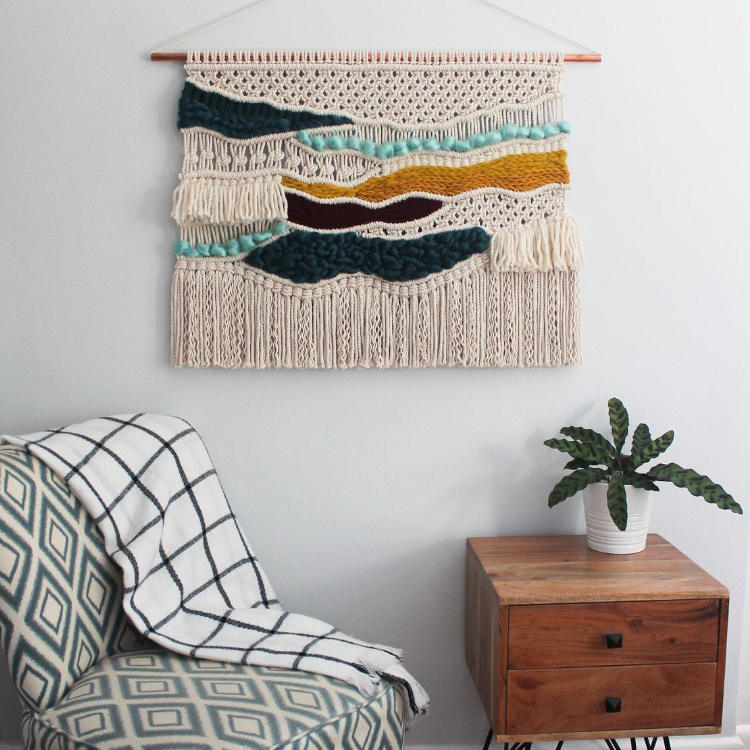 พรมทอมือสีสันสดใสแบบนอร์ดิกที่แขวนติดผนังที่กำหนดเองสำหรับโรงแรมโรงแรมร้านค้าอุปกรณ์ตกแต่ง