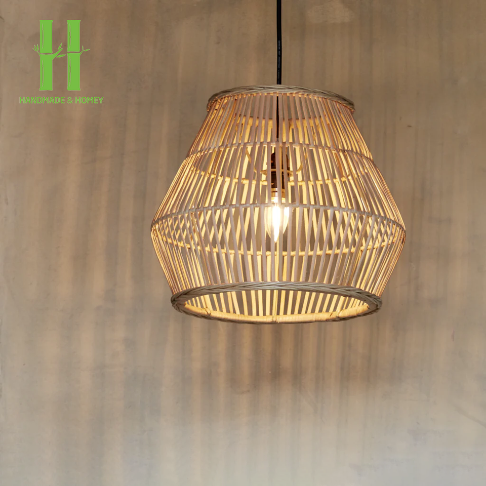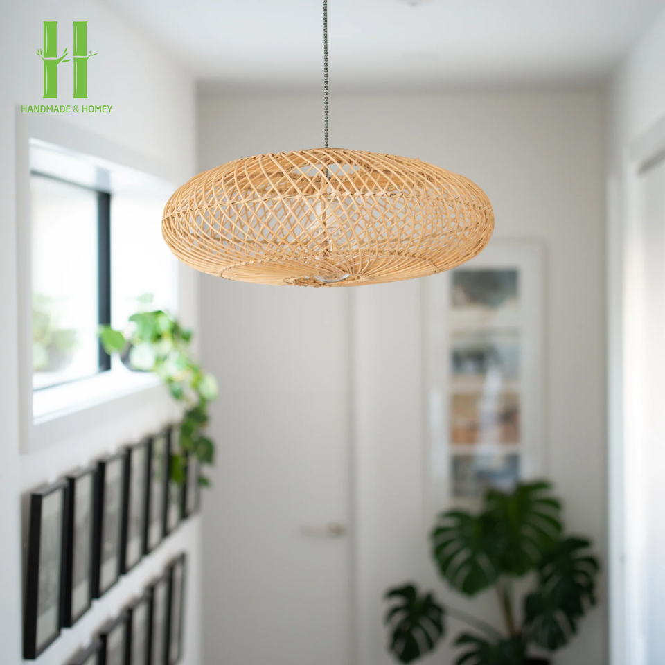 โคมไฟเพดานหวายสานมือสไตล์โมเดิร์นสำหรับตกแต่งภายใน โคมไฟหวายธรรมชาติ รูปทรงกลีบดอกไม้สีเบจสไตล์วบิซาบิ