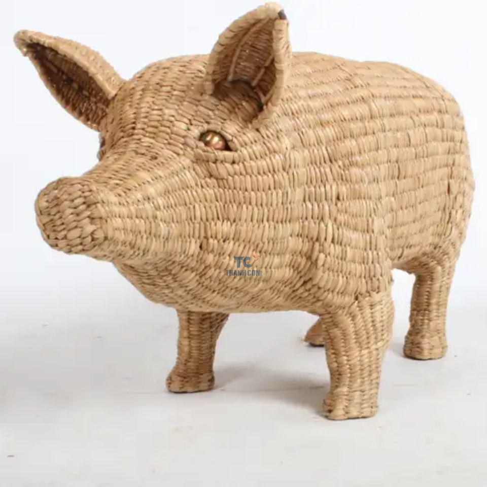 มือทอมือเล่นผักตบชวาเชือกขนาดใหญ่ยืนหมูรูปสัตว์กําจัดสิ่งสกปรกลับหมูผลิตในเวียดนามราคาขายส่ง