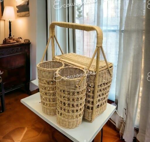ชื่อผลิตภัณฑ์:ตะกร้าปิกนิกหวายหวายหวายพร้อมช่องใส่ของ