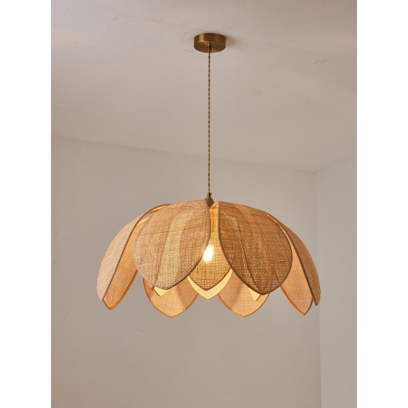โคมไฟหวายสานมือรูปกลีบดอกไม้ ขั้ว E27 LED ทรงกลม สำหรับห้องนั่งเล่น ห้องนอน ร้านอาหาร บ้านพัก