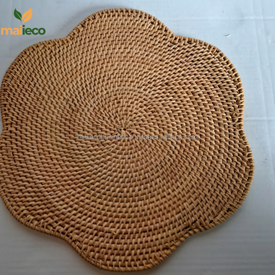 แผ่นรองจานหวายสานลายดอกไม้ขอบหยัก สำหรับตกแต่งบ้าน งานแต่งงาน ร้านอาหาร และงานปาร์ตี้