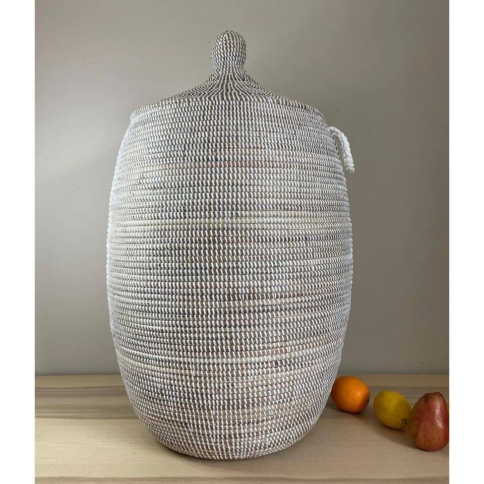 ตะกร้าผ้าสานมือจากหญ้าทะเลและพลาสติก ตะกร้าเก็บของทำมือ ขายส่ง เป็นมิตรกับสิ่งแวดล้อม ผลิตในเวียดนาม