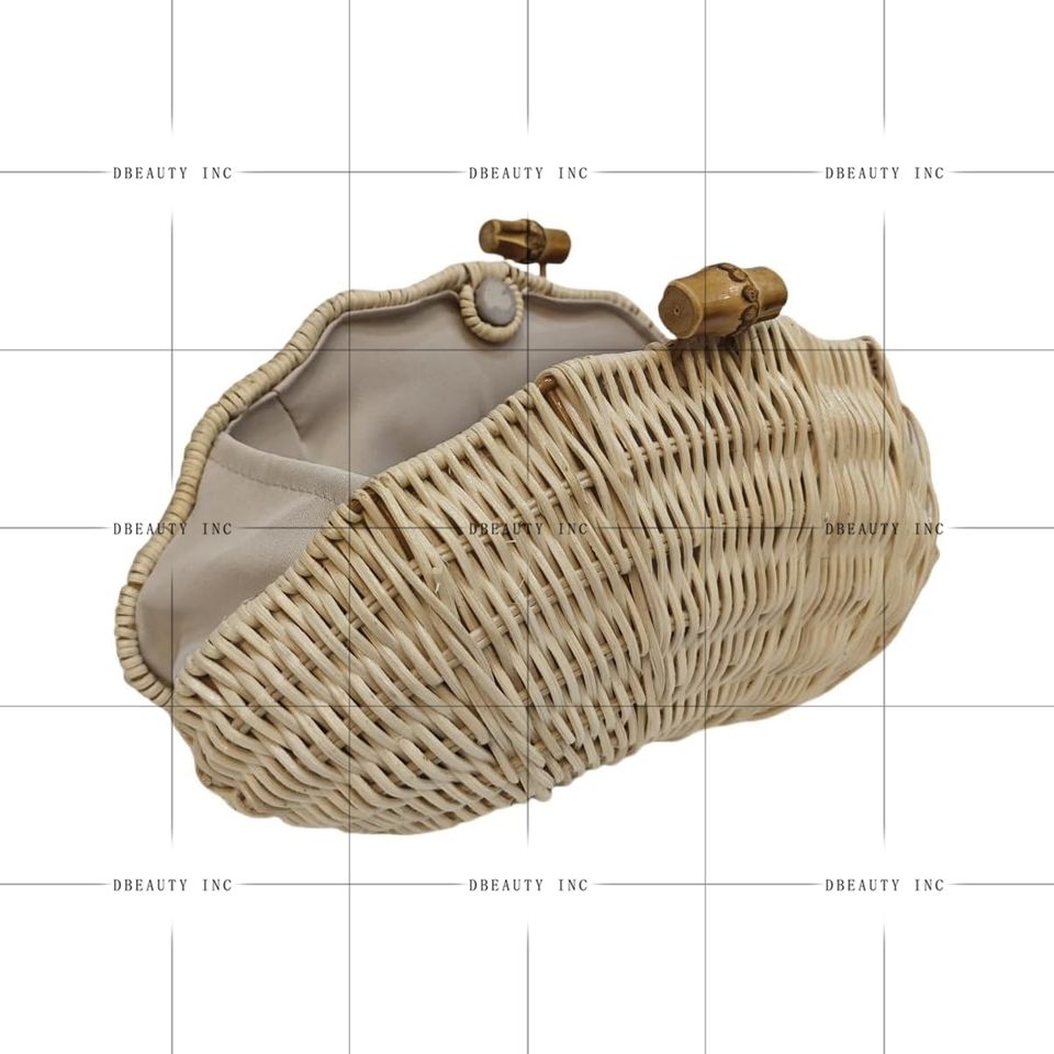 กระเป๋าคลัทช์หวายรูปเปลือกหอยถักมือสำหรับผู้หญิง กระเป๋าคลัทช์สไตล์โบฮีเมียน กระเป๋าถือสำหรับเดินทางไปเที่ยวทะเลช่วงฤดูร้อน