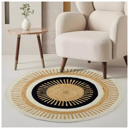 พรมปอกระเจาถักมือประกอบด้วยลายดอกไม้และเดซี่หลากสีดีไซน์แปลกๆไม่เหมือนใครในราคาขายส่ง