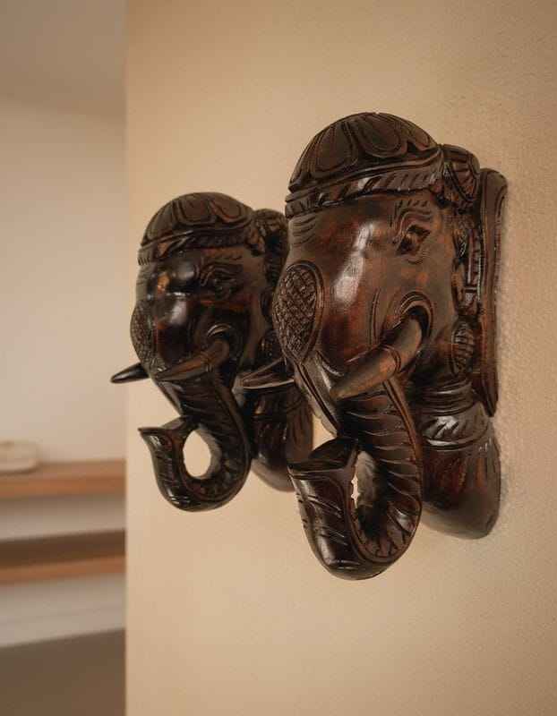 ขายึดผนังรูปหัวช้างไม้แกะสลักด้วยมือ