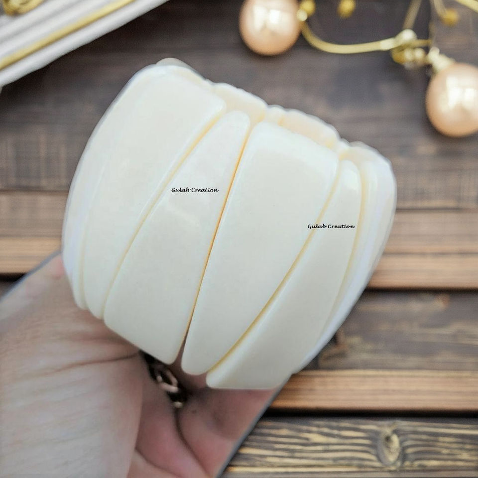 กำไลข้อมือลูกปัดเรซินสีขาวแบบโค้งทำมือกำไลคริสเตียนแบบกว้างสไตล์วินเทจตามสั่ง