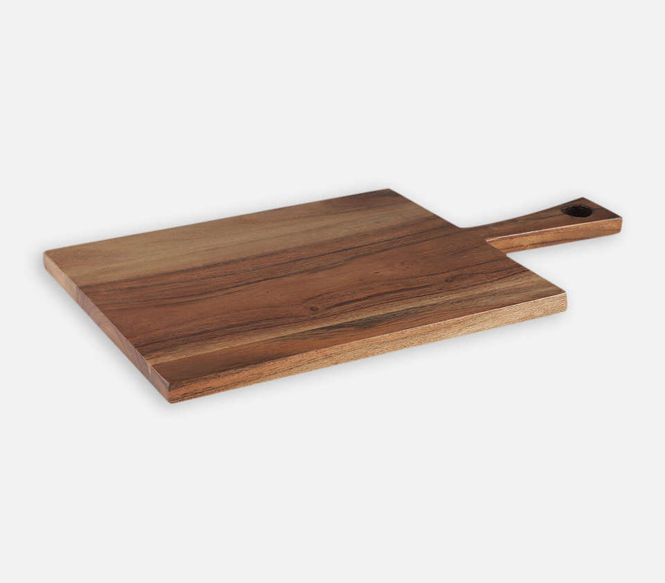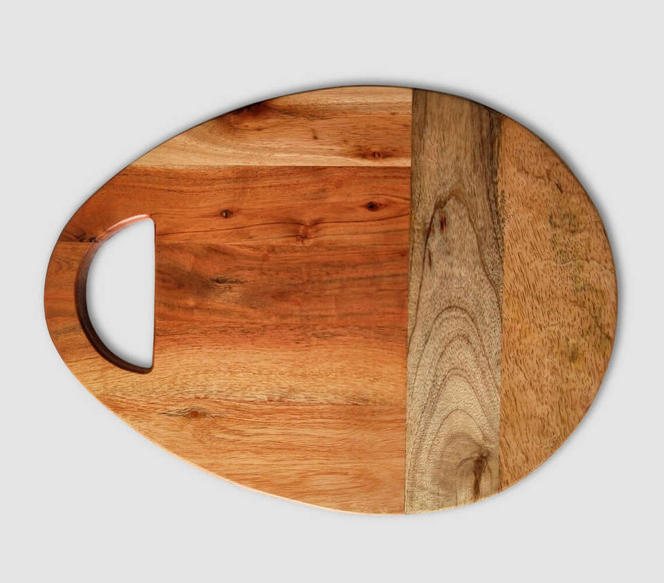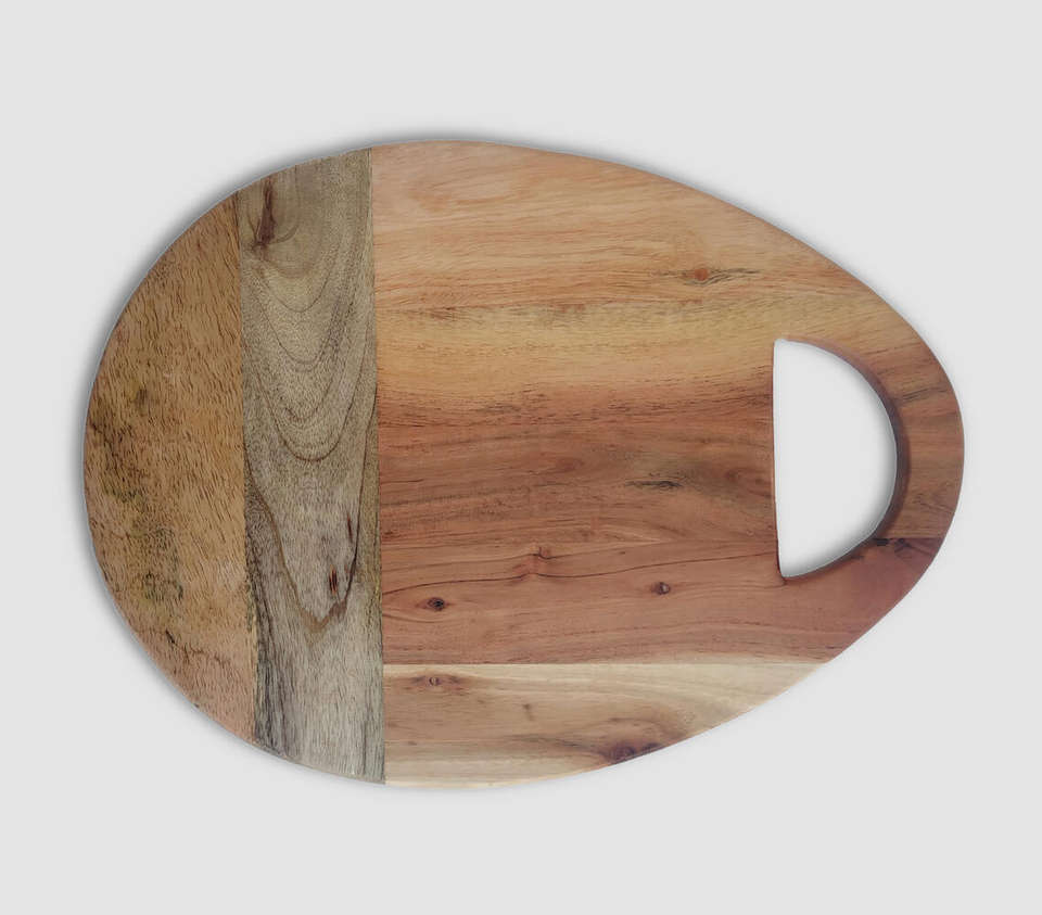 เขียงไม้ทรงรีจากไม้กระถินเทศ พร้อมช่องจับขนาดใหญ่ ทนทาน ลายไม้หลากสี ขายส่ง