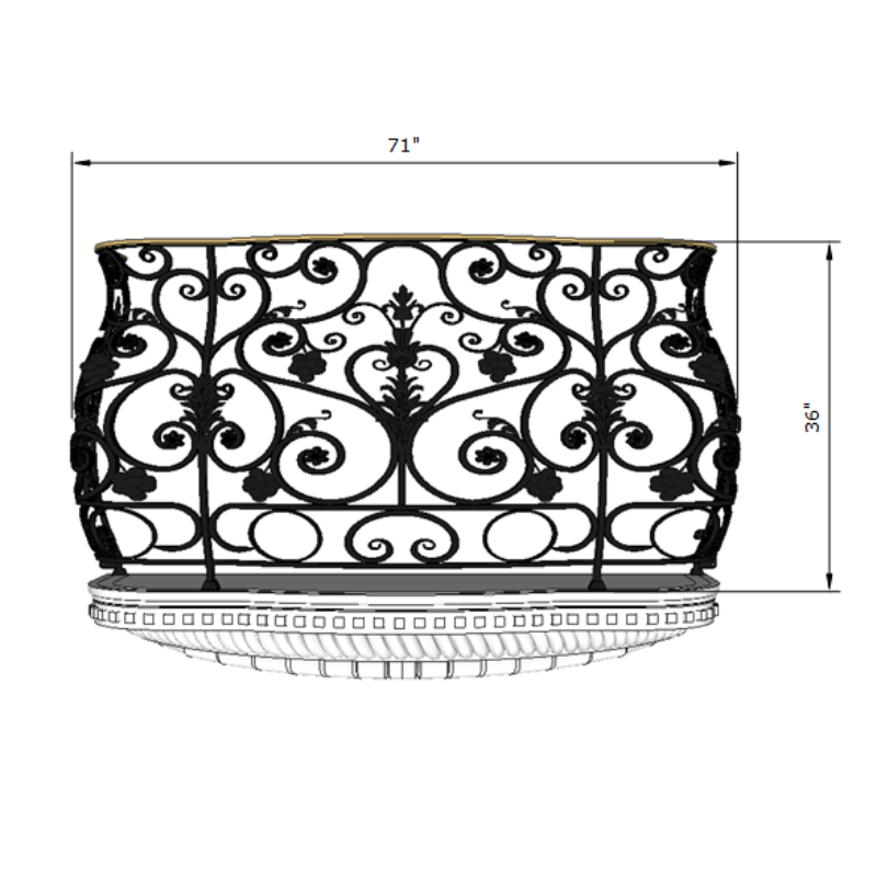 ราวระเบียงเหล็กฟอร์จด้วยมือมีดีไซน์ตกแต่งอย่างมีศิลปะและพื้นผิวเคลือบด้วยผงสำหรับระเบียงกลางแจ้งและในร่ม