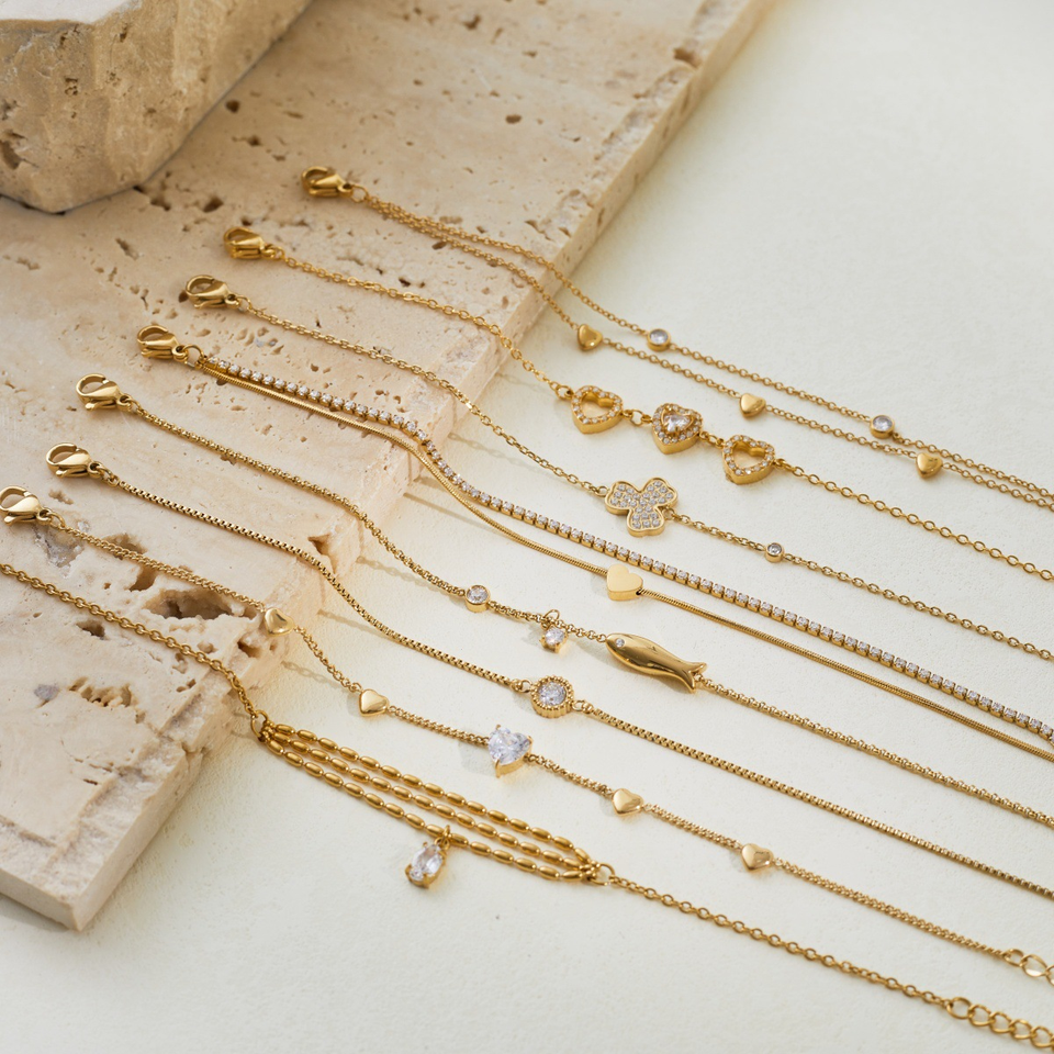 เครื่องประดับมือ - สร้อยข้อมือสแตนเลสประดับพลอยรูปหัวใจ - โดดเด่น เรียบง่าย และใช้งานได้หลากหลาย