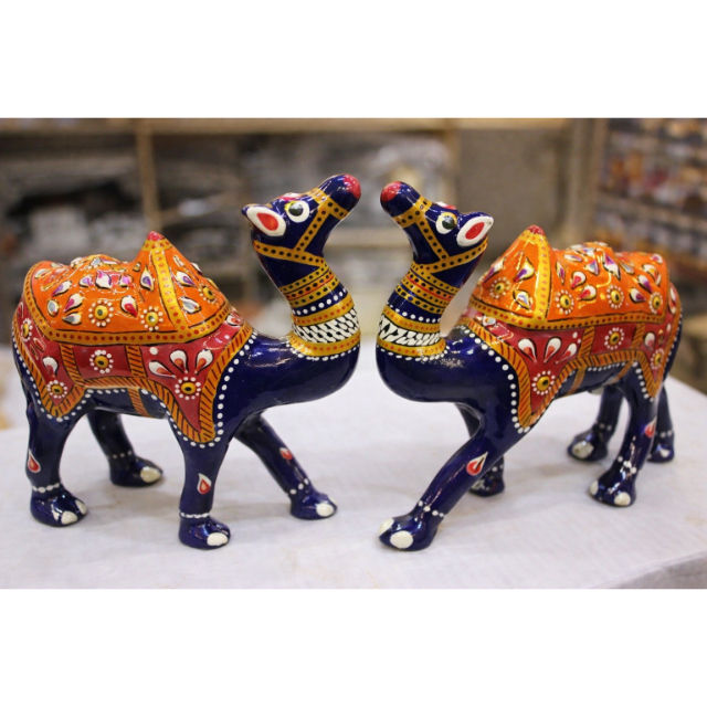 ชุดรูปปั้นอูฐอาร์ตเดโคแบบวาดมือสไตล์ราชสถาน จำนวน 2 ชิ้น ผลิตในอินเดีย สำหรับเทศกาลดีวาลีและงานแต่งงาน