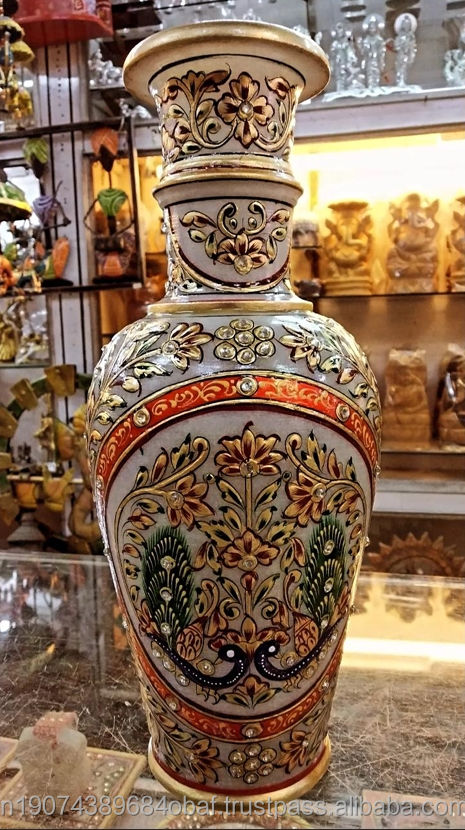 แจกันเซรามิกอาร์ตเดโคเพ้นท์ลายด้วยมือจากอินเดีย