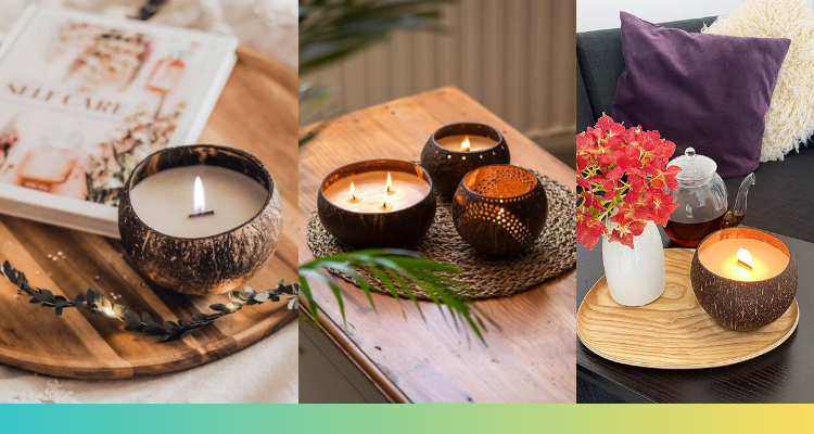 กะลามะพร้าวและเทียนมะพร้าววัสดุ