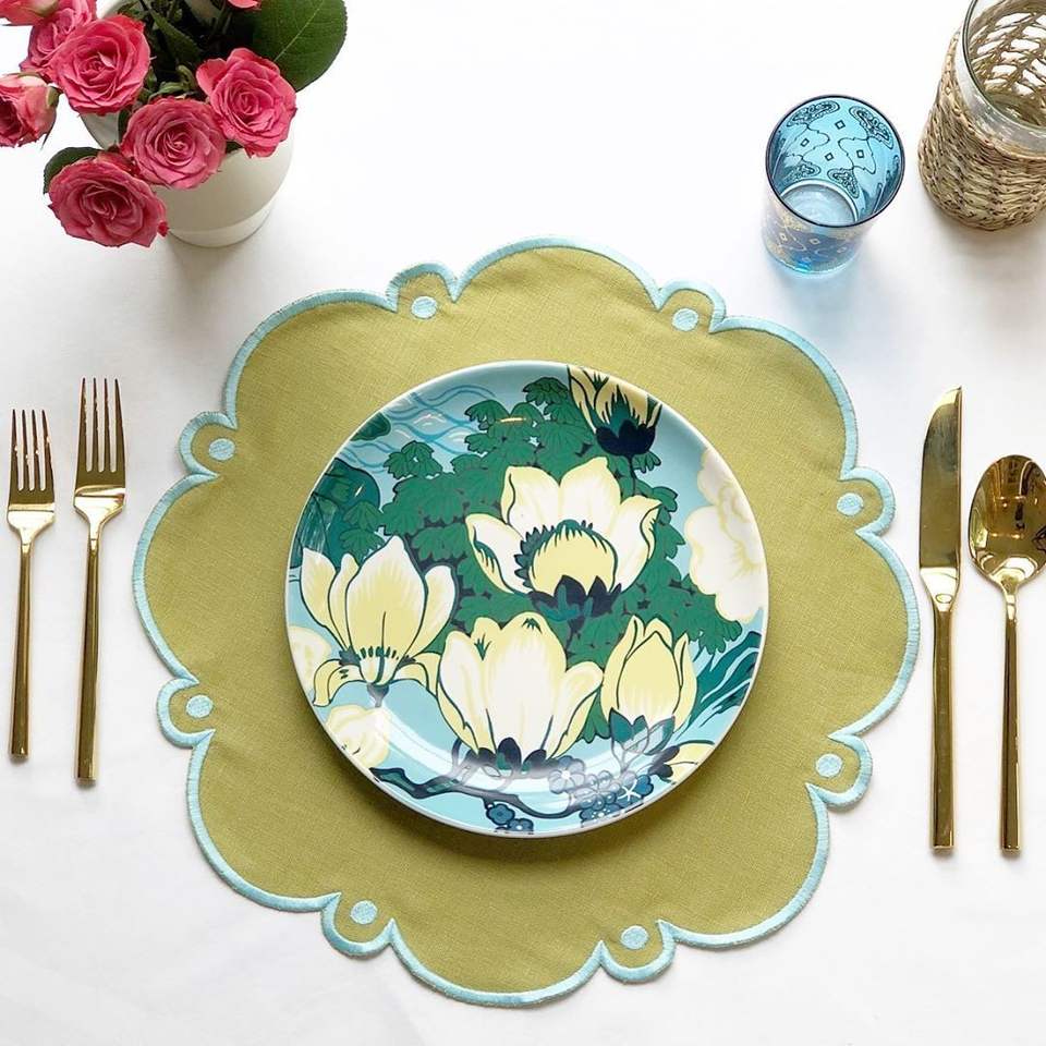 แผ่นรองจานผ้าลินินเย็บด้วยมืองานปักที่เน้นงานฝีมือและเพิ่มความอบอุ่นให้กับประสบการณ์การรับประทานอาหารของครอบครัว