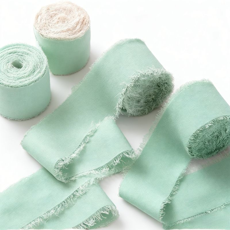 ริบบิ้นชีฟองฉีกมือประดับดอกกุหลาบแห้งสำหรับงานแต่งงาน ริบบิ้นผูกช่อดอกไม้