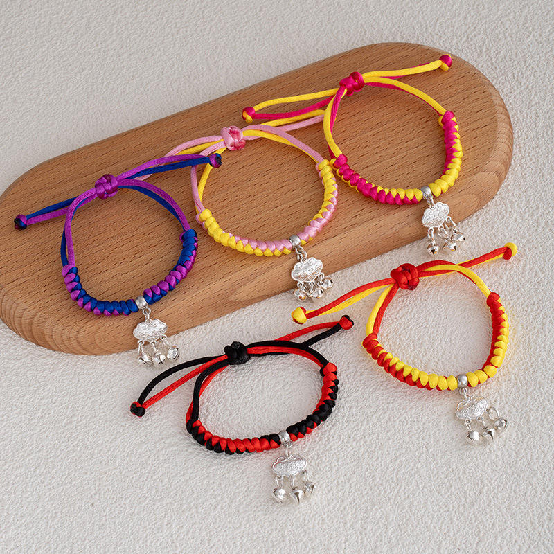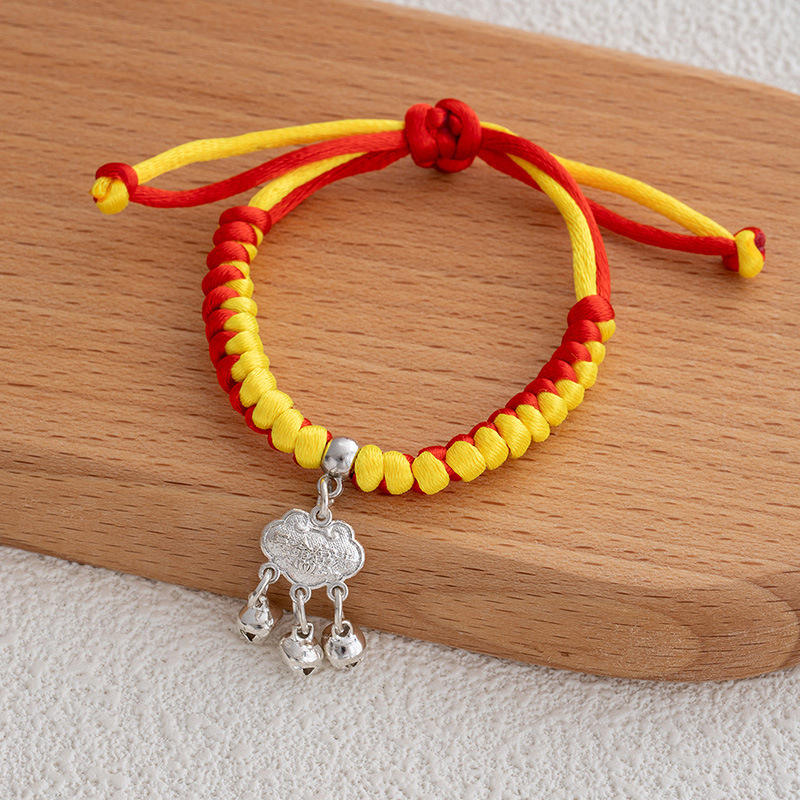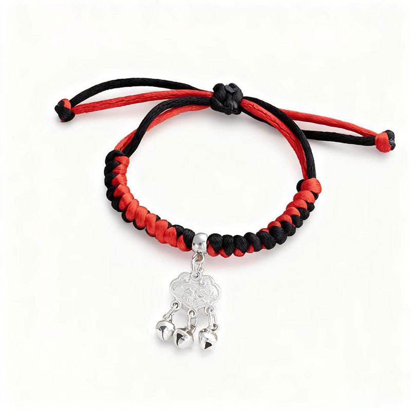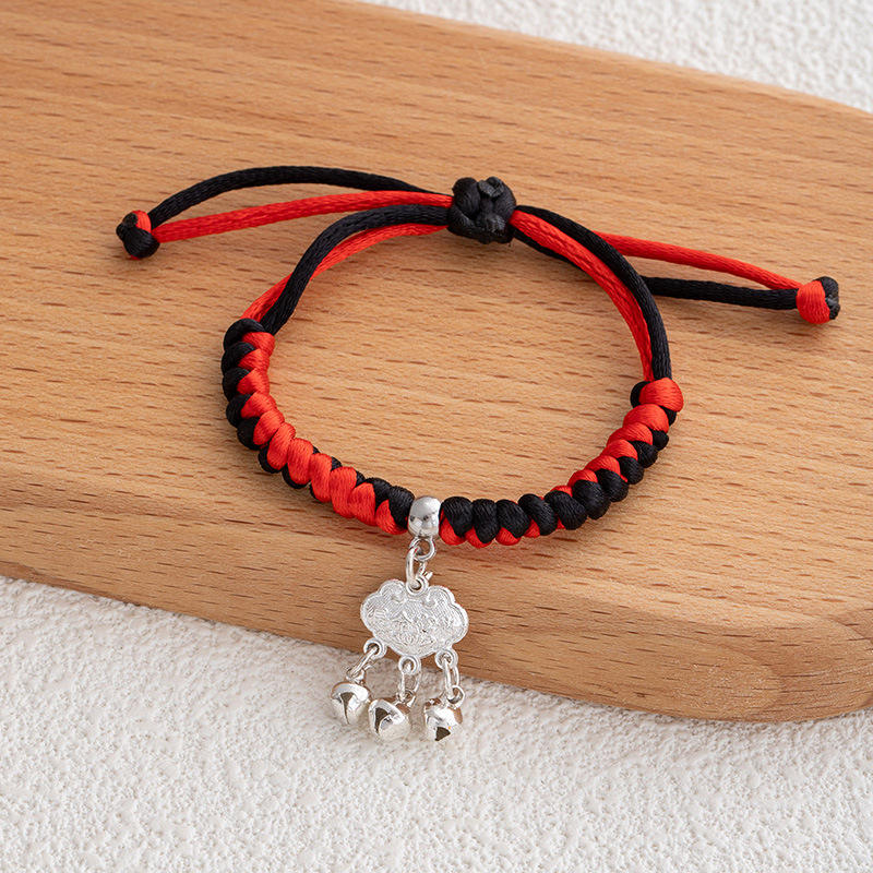 กำไลข้อมือเหล็กถักมือสไตล์ชาติพันธุ์สำหรับผู้หญิง ประดับล็อคมงคล ยืนยืนยาว ประดับเพชร ลายปมสีแดง กำไลสีตัดกัน ลายเรือมังกร