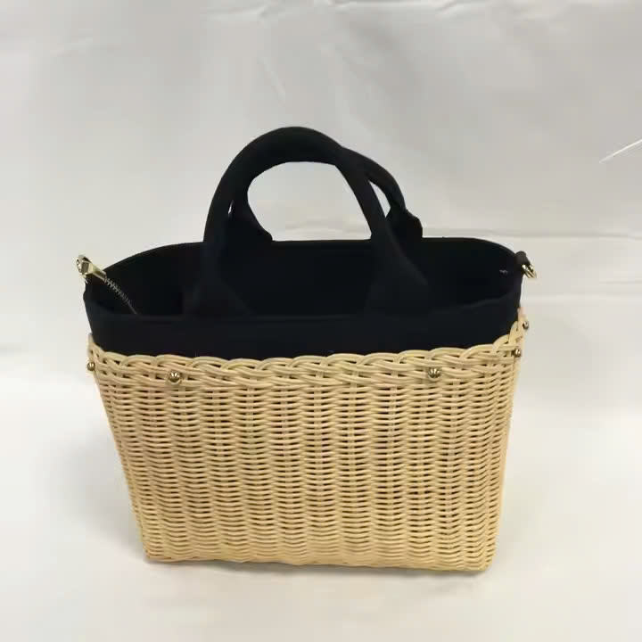 กระเป๋าถือหวายธรรมชาติสานมือสำหรับเด็กผู้หญิงกระเป๋าช้อปปิ้งแบบพกพากระเป๋าหัตถกรรม