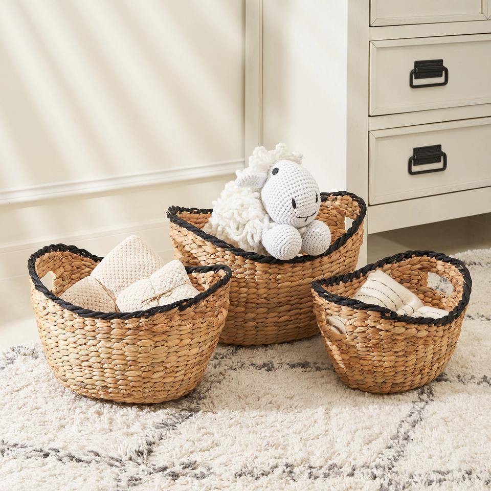 ตะกร้าเก็บของสานมือจากผักตบชวา ตะกร้าเก็บของทำมือ ขายส่ง เป็นมิตรกับสิ่งแวดล้อม ผลิตในเวียดนาม