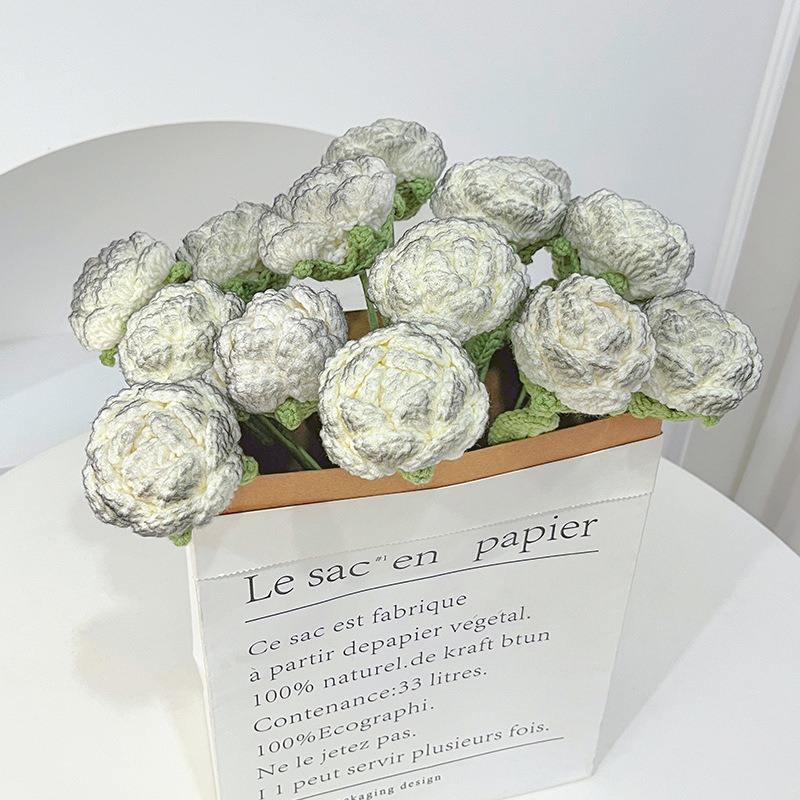 ช่อดอกกุหลาบถักทอด้วยมือ ของตกแต่งดอกไม้ อเนกประสงค์ ดอกไม้แห่งชีวิตนิรันดร์ ตะขอเกี่ยวดอกไม้ ไหมพรมถัก ดอกไม้ขายส่ง