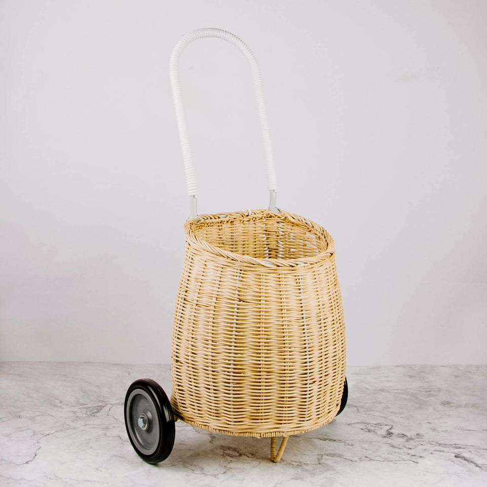 ตะกร้าหวายสานมือ กระเป๋าเล่นและเก็บของสำหรับเด็ก รถเข็นเด็ก ตะกร้ารถเข็นขายส่งสำหรับเด็ก