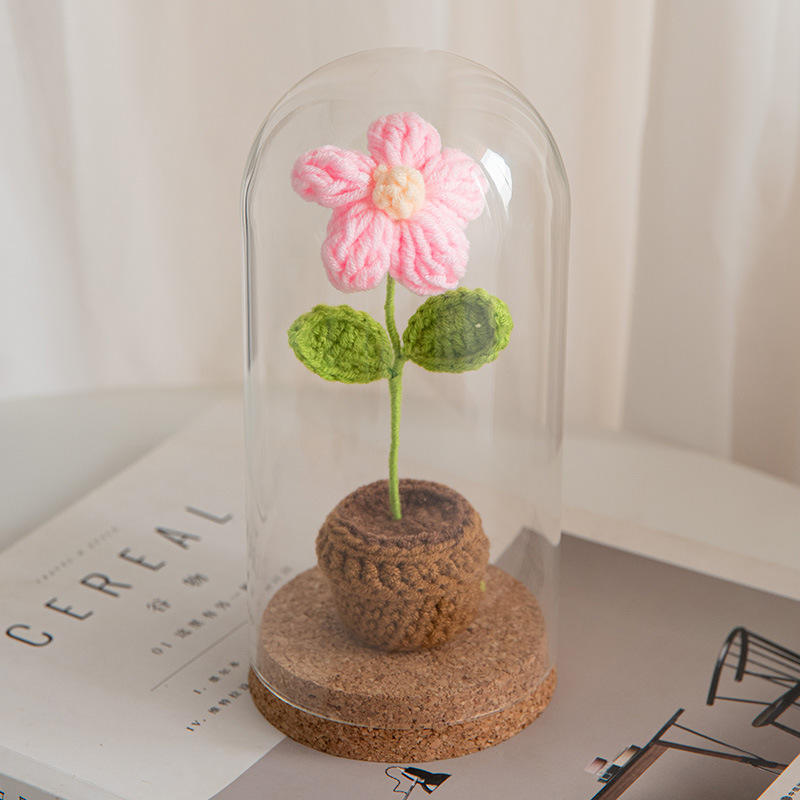 ดอกไม้ประดิษฐ์รูปดอกทานตะวันถักโครเชต์จากไหมพรมลายกุหลาบ งานแฮนด์เมด สำหรับวันวาเลนไทน์ พร้อมกระถางปลูก ตกแต่งสำเร็จรูป ขายส่ง