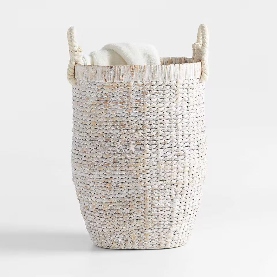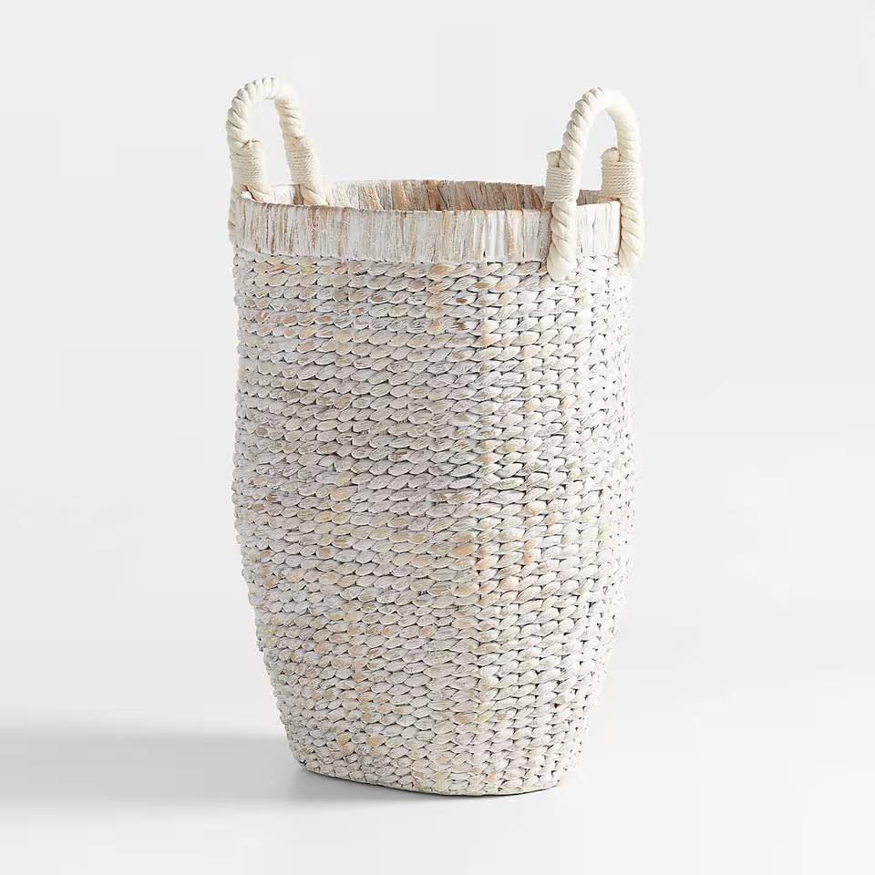 ตะกร้าสานมือทรงสูงสีขาวจากผักตบชวา ตะกร้าเก็บของทำมือ ขายส่ง เป็นมิตรกับสิ่งแวดล้อม ผลิตในเวียดนาม