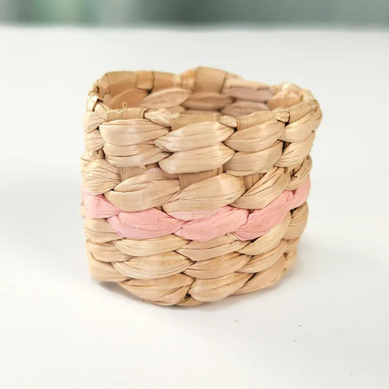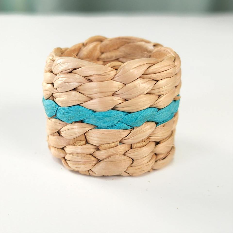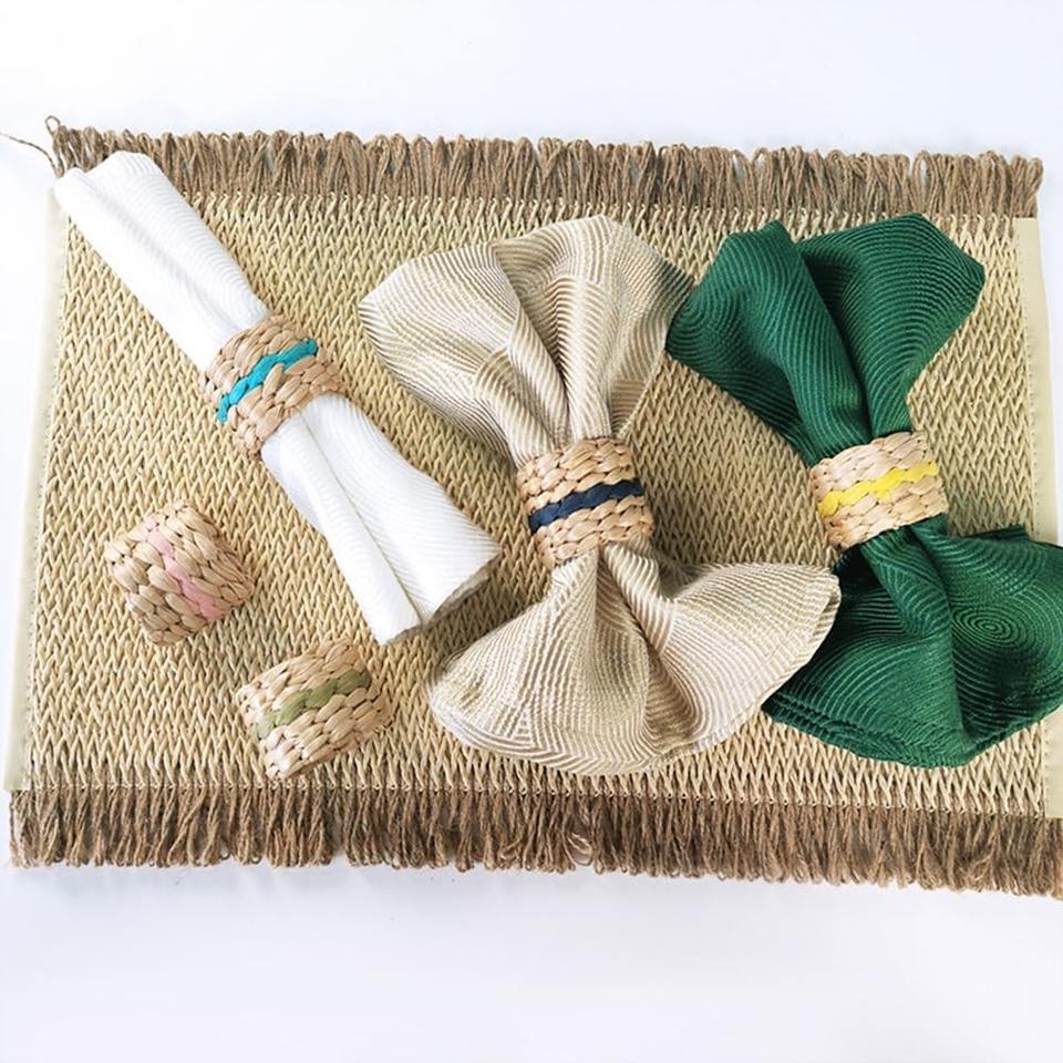 แหวนผ้าเช็ดปากผักตบชวาแบบถักมืออุปกรณ์ตกแต่งอาหารเย็นชุดวงแหวนธรรมชาติสำหรับผ้าเช็ดปาก