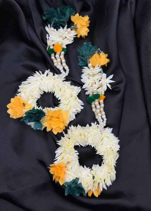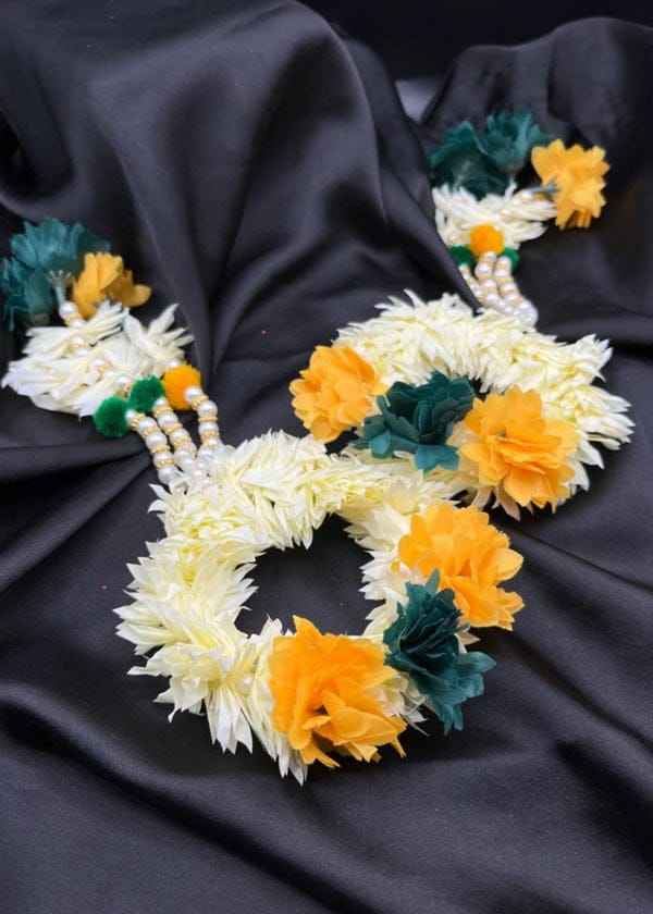 เครื่องประดับดอกมะลิประดิษฐ์ทำมือสำหรับเจ้าสาวและเพื่อนเจ้าสาวในงานเมยอน ฮาลดี งานเฉลิมฉลองต่างๆ เครื่องประดับกัจราสำหรับผู้หญิง