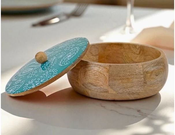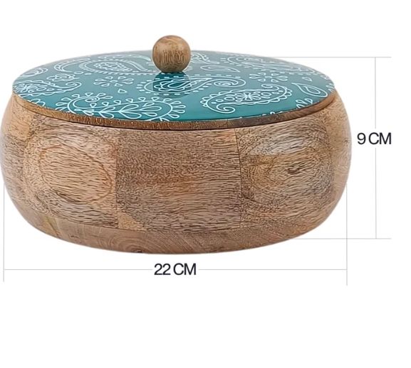 กล่องใส่มังคุดทรงกลมลายลูกน้ำสีเขียวทำมือ