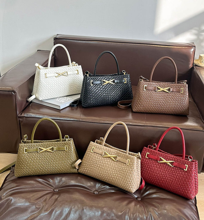 กระเป๋าถือแฟชั่นสไตล์เรโทรสำหรับผู้หญิง กระเป๋าหนัง PU ทอแบบหรูหรา กระเป๋าสะพายข้างสำหรับผู้หญิง กระเป๋าโท้ท