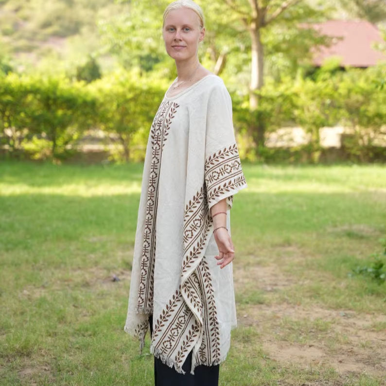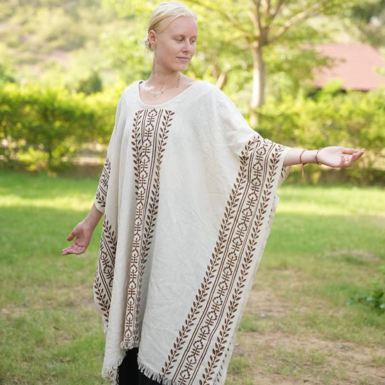 เสื้อปอนโชผู้หญิงผ้าฝ้ายพิมพ์ลายเสื้อโบโฮสำหรับเทศกาลทำมือน้ำหนักเบาคลุมชายหาดทำด้วยมือ