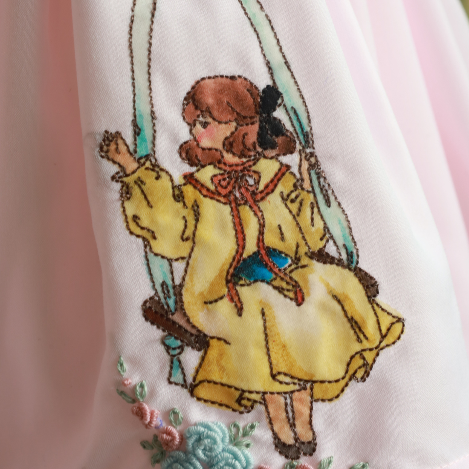 ชุดเดรสเจ้าหญิงทำด้วยมือสำหรับเด็กผู้หญิงชุดเดรสเจ้าหญิงทำมือดีไซน์วินเทจคอกลมสำหรับเด็ก-โซเฟีย