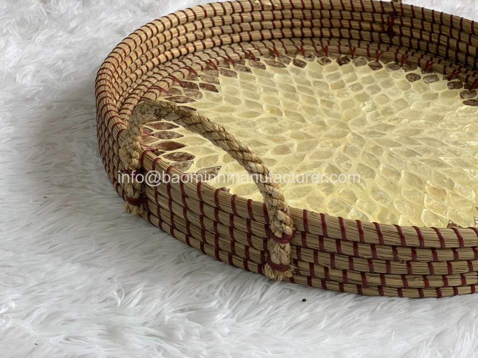 Handcrafted 100% หญ้าทะเลธรรมชาติและถาดมุก,แล็กเกอร์ถาดเสิร์ฟสำหรับตกแต่งบ้านตกแต่งโต๊ะกาแฟ