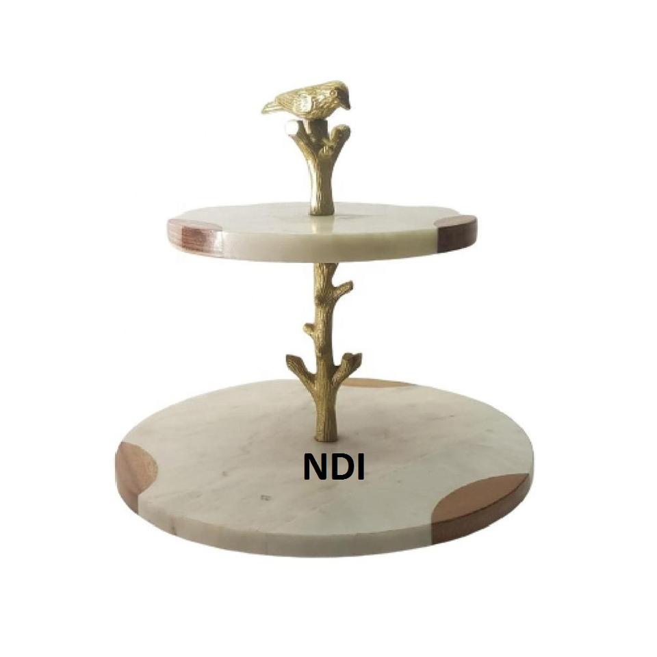 ขาตั้งเสิร์ฟเค้กไม้มะม่วง 2 ชั้น รูปทรงสั่งทำพิเศษ ตกแต่งด้วยเคลือบอีนาเมล สำหรับงานแต่งงานและโอกาสอื่นๆ