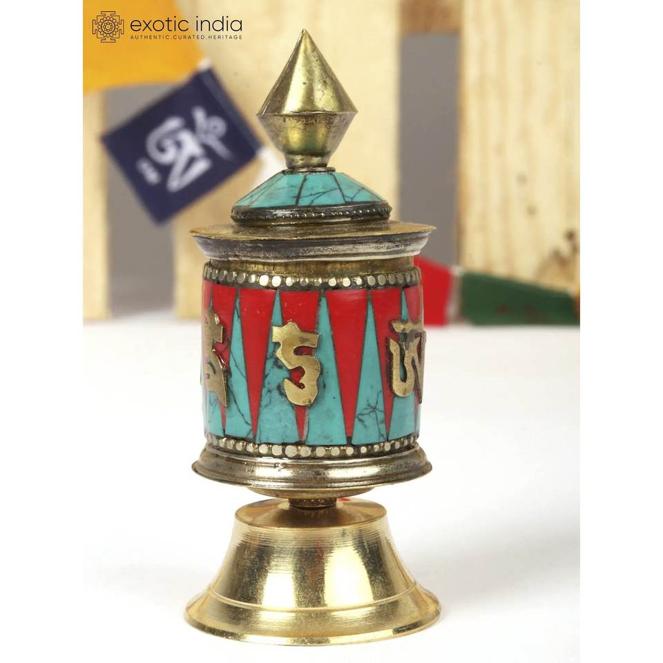 Handcrafted 3 Inch Tibetan Buddhist Prayer Wheel Small Table Decoration Piece Made in Nepal