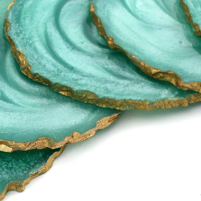 ที่รองแก้วทำมือ3D เรซินสีทองดีไซน์ดอกไม้ตกแต่งโฮมออฟฟิศอย่างมีสไตล์