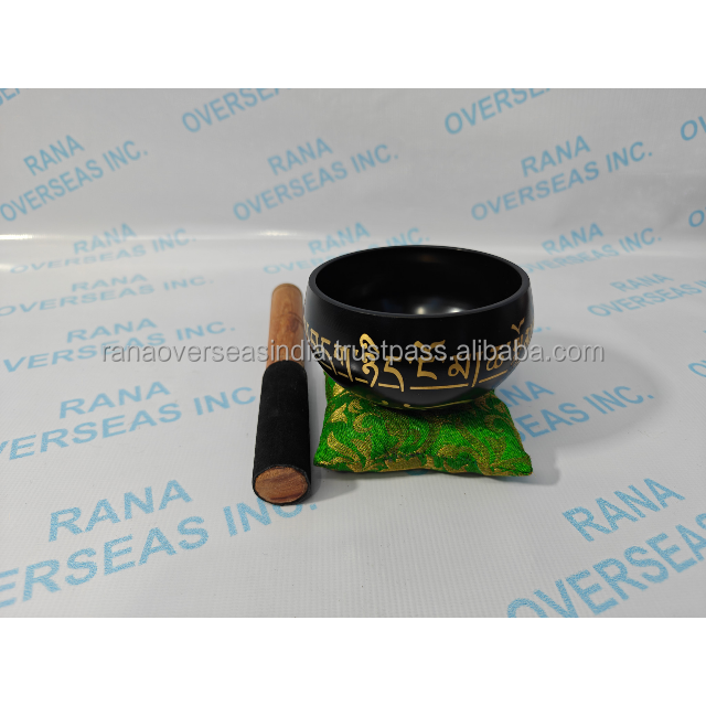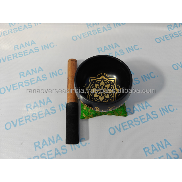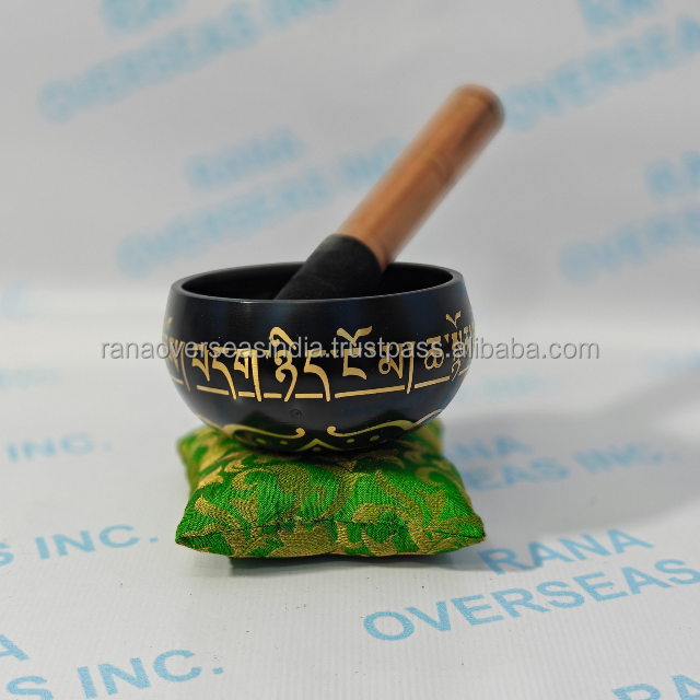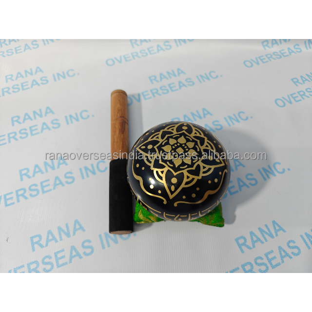 ชุดขันเสียงทิเบตโบราณทำมือ ขนาด 4 นิ้ว สีดำทองเหลือง สำหรับบำบัดรักษา พร้อมไม้ตี หมอนรอง และอุปกรณ์โยคะ จักระ และเครื่องใช้บนโต๊ะ