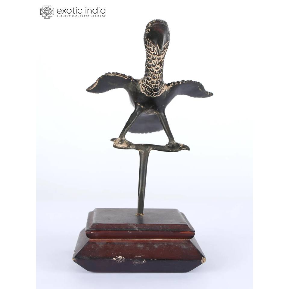 Handcrafted 7-Inch Brass Bird Statue on Wood Base Decorative Sculpture for Table Décor