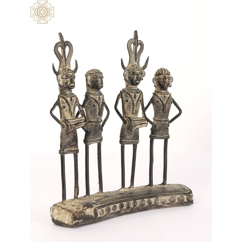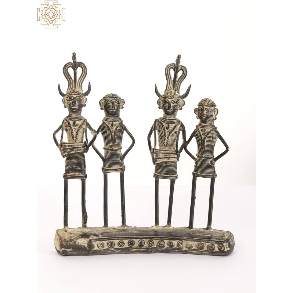 รูปปั้นทองเหลืองขนาด7นิ้วทำด้วยมือจากอินเดียสองคู่ที่ยืนอยู่บนฐานรูปปั้นที่ไม่เหมือนใคร